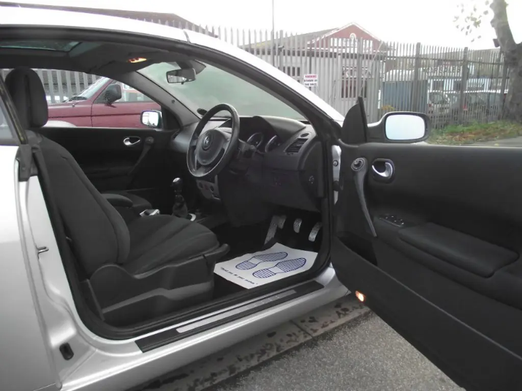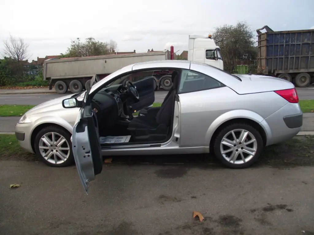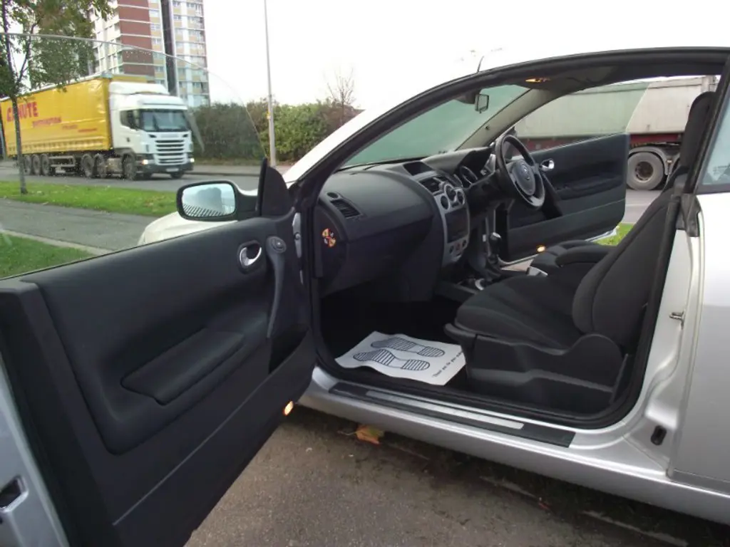 Renault Megane 1.9 dCi 130 Dynamique 2dr GOOD MILEAGE FOR THE YEAR 2005 (55 reg), Convertible 83,373 miles Manual 1900cc Diesel ONE YEAR MOT, SILVER, DRIVE VERY WELL AND ALSO IN A VERY GOOD CONDITION. . Full service history, Excellent bodywork, Interior - Excellent Condition, Tyre condition Excellent, Electrically folding glass roof/sunblind, Fingertip controls for audio system, 16" Nervastella alloy wheels, One touch electric front/rear windows, 4x15W radio + single CD, Variable PAS, Height/reach adjust steering wheel, Thatcham Cat.1 alarm, Insurance Approved Immobiliser, Height adjustable driver/front passenger seats, Lumbar adjustment for driver seat. 4 seats, RENAULT MEGANE CONVERTIBLE 2005 MODEL,55 REG,SILVER,1.6 LITRES,AIR CONDITION,AIR BAGS,CD RADIO,POWER STEERING,ALARM,CENTRAL LOCKING,IMMOBILISER,ALLOYS,DRIVE LIKE NEW.